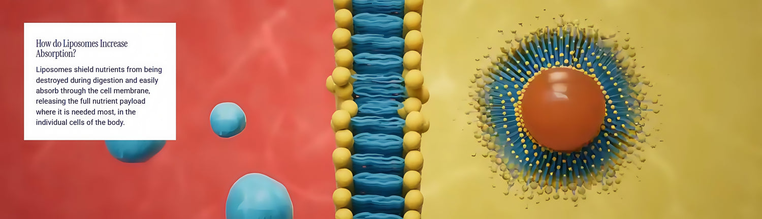 Liposomal delivery is a technique used to help support the absorption and bioavailability of certain nutrients. It involves encapsulating the active ingredient within tiny lipid-based bubbles called liposomes. These liposomes act as protective carriers, helping the nutrient pass through the digestive system and supporting its absorption into the body.
