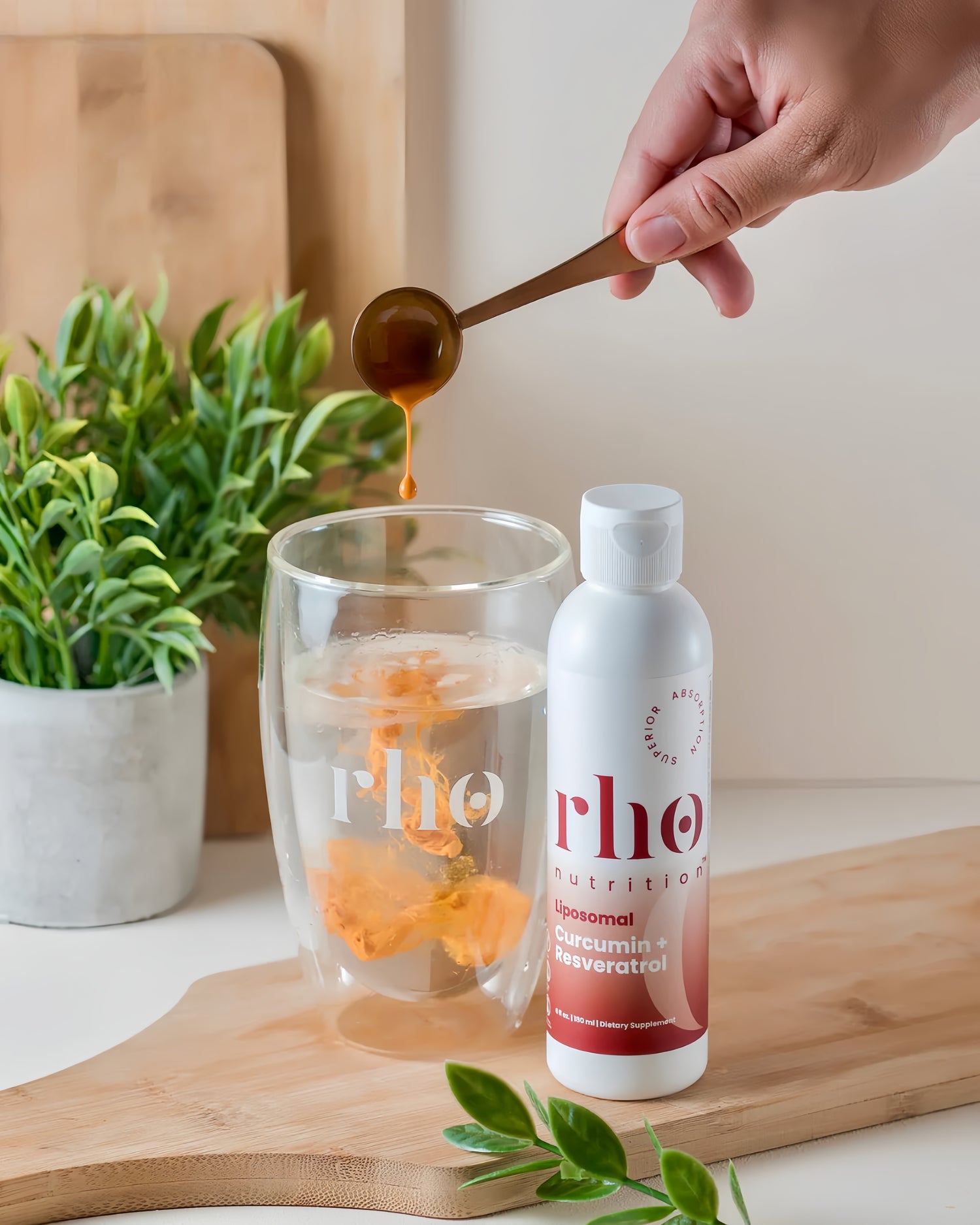 I take a teaspoon ofRho Curcumin + Resveratrolin the afternoon to help support a healthy inflammation response, improve my immune system and support healthy aging on a cellular level.