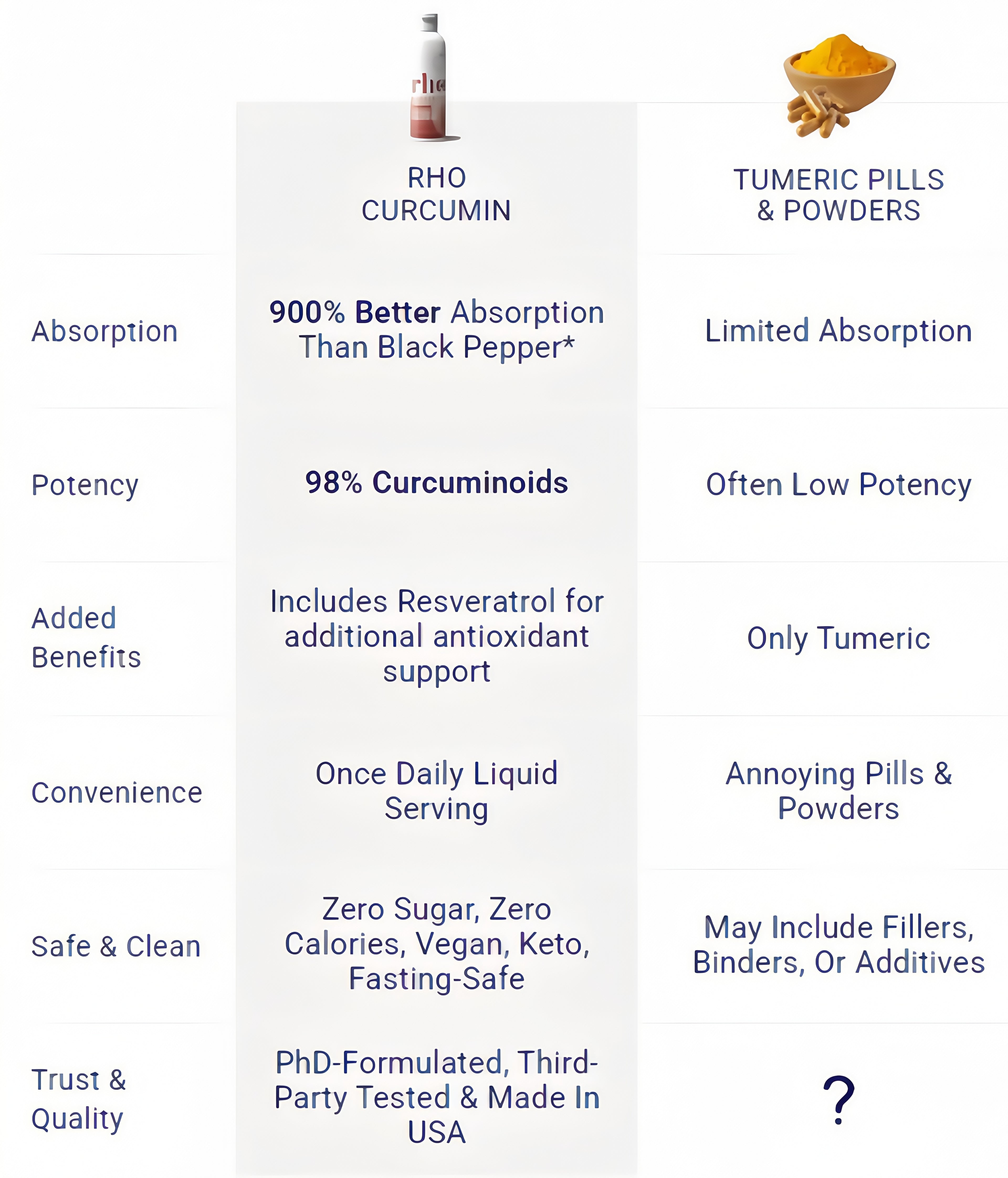 Rho Curcumin + Resveratrol is Vegan, has Zero Calories and is free from: Sugar, Dairy, Gluten, GMOs, Soy, Nuts, Corn, Additives, Coloring.